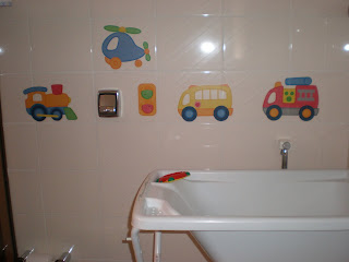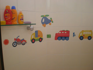 Fui viajar, encontrei uns adesivos bacanas de carrinho – paixão do meu marido, que ele espera piamente que seja compartilhada pelo filho – e então, pronto!