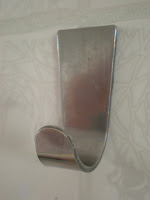 1. Sabe aquele ganchinho com fita scotch atrás, que a gente compra para pendurar algumas coisitas e que depois de um tempo cai? Então, estava com um destes no banheiro para pendurar a toalha de rosto do marido. Depois que a “fita-banana” – como diz a