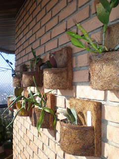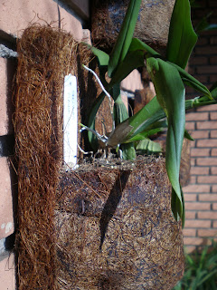 Tenho oito vasinhos deles pendurados na sacada. Alguns sofrem bastante com a desidratação, porque o coco não retém a umidade como o xaxim. Mas vamos adequando à planta ao novo substrato, ampliando as regas – uma boa dica para os dias secos é aspergir água à noite, para que a orquídea tenha conforto, ou deixar o piso do local molhado – e sempre observando o comportamento das suas queridas.