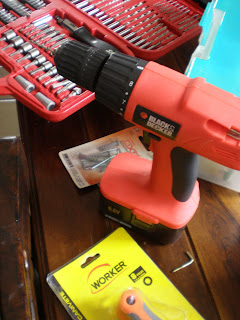 Já tinha contado que meu pai é do tipo professor Pardal e para auxiliá-lo nada melhor que uma grande e bem fornida caixa de ferramentas. Há duas semanas ando com a caixa saracoteando pela minha casa, pois quero colocar alguns quadros, enfeites e peguei a dita cuja para usar a furadeira. Mas qual foi a minha surpresa quando meu pai sugeriu que para pequenos furos eu usasse a parafusadeira elétrica?