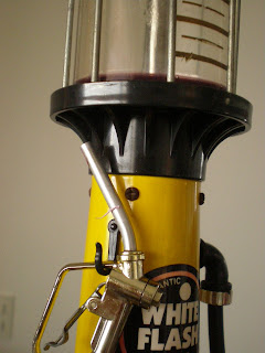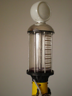 Uma delas foi esta bomba de gasolina, com a qual o sogro oferecia whisky a seus convidados. No meio da arrumação da árvore de Natal ela ressurgiu.