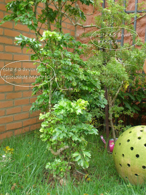 “Flávia, bom dia, pesquisando sobre a árvore da felicidade, vi seu e-mail e seu interesse sobre o assunto, gostaria, se possível, que você me mandasse a foto das duas plantas, mostrando qual o macho e qual a fêmea.