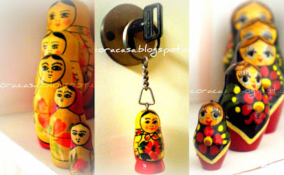 Muito tempo depois, outra amiga da minha mãe vai para a Rússia e volta com mais um jogo de bonecas, desta vez para a minha mãe, e um simpático chaveirinho para mim. Mais alegria.