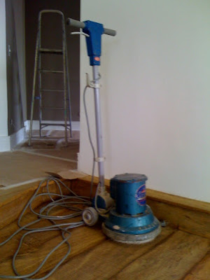 Encerando o piso de peroba de demolição.Papai Noel: pode me trazer uma enceradeira atrasado?