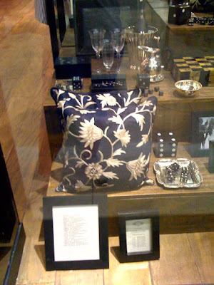 Mas não é que passando em frente da Le Lis Blanc Casa me deparo com esta vitrine, toda em preto e marfim com peças em prata. Ela combina perfeitamente com meu novo escritório – este da poltroninha de couro preta da foto abaixo, que limpei hoje pela manha.