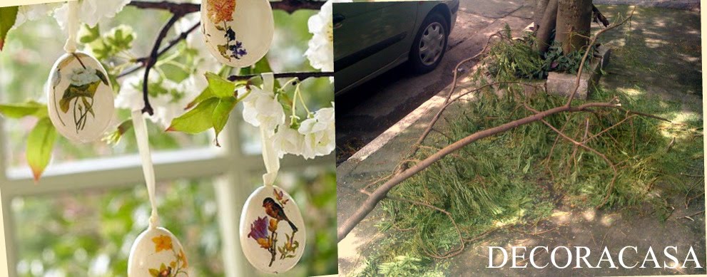 Lu Gastal e vejo as casquinhas de ovos decoradas à venda. Só me faltava o galho, que achei na rua andando pela vizinhança.