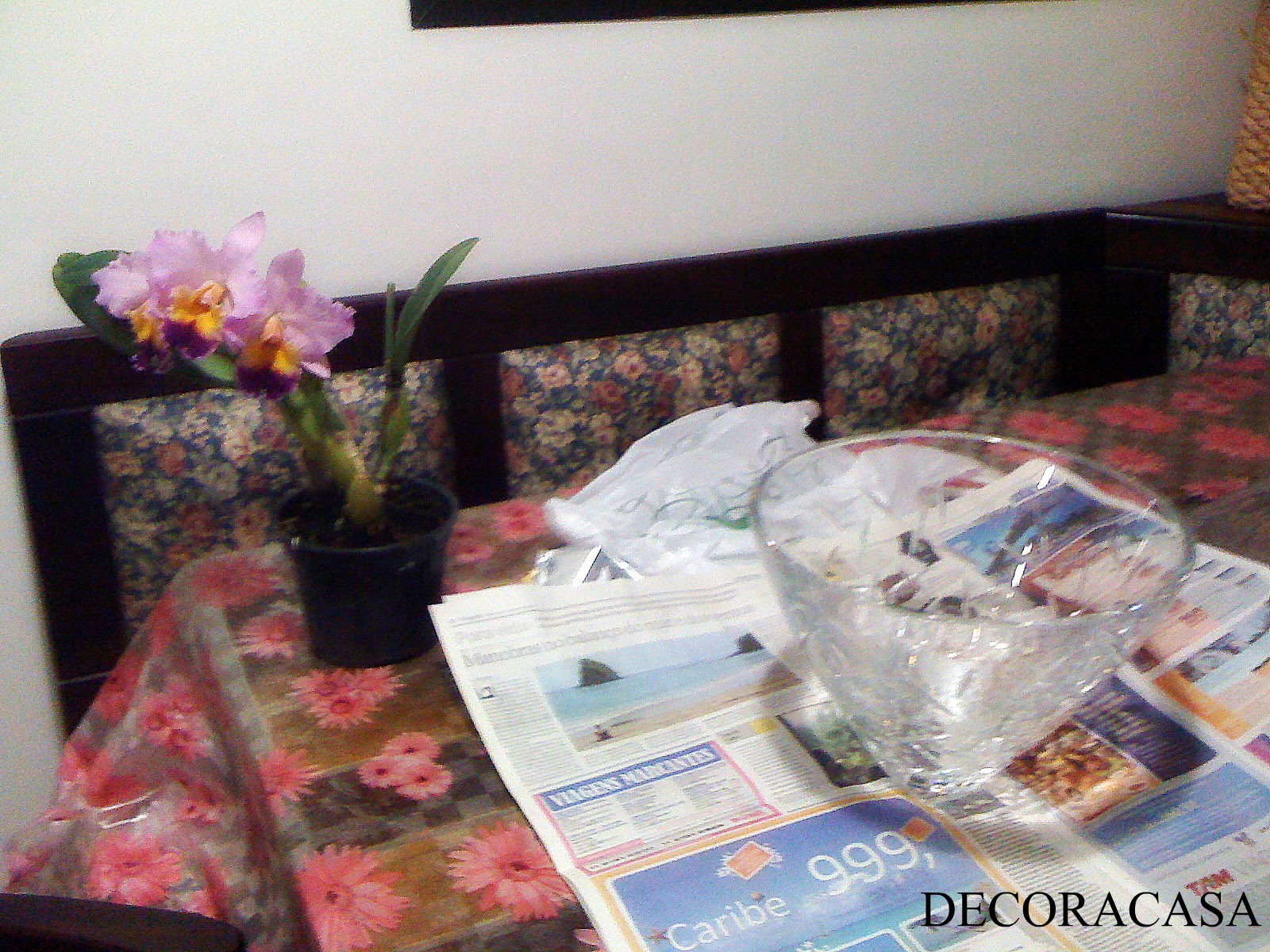 1. Pegue um vaso com flores em seu esplendor e escolha onde acomodá-lo. Dica: forre o local de trabalho com jornal para ajudar na limpeza final 😉