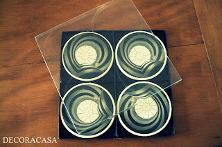 Do tal bate papo virtual lembrei-me de uma lembrança da visita que comprei: um set de 4 porta copos que retratam a propalada cúpula de vidro do museu.