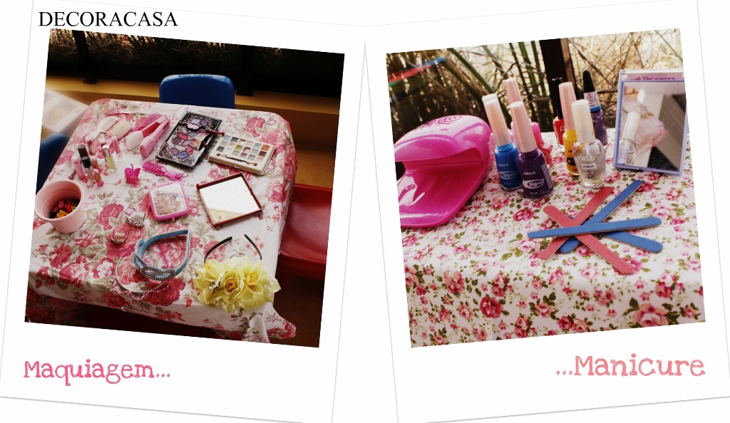E ainda mais dois cantinhos: o da maquiagem e o da manicure. Nem conto para vocês como é que elas ficaram… mas tenho a mais absoluta certeza de que já dá para imaginar 😉