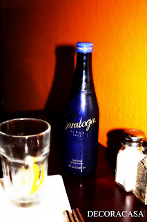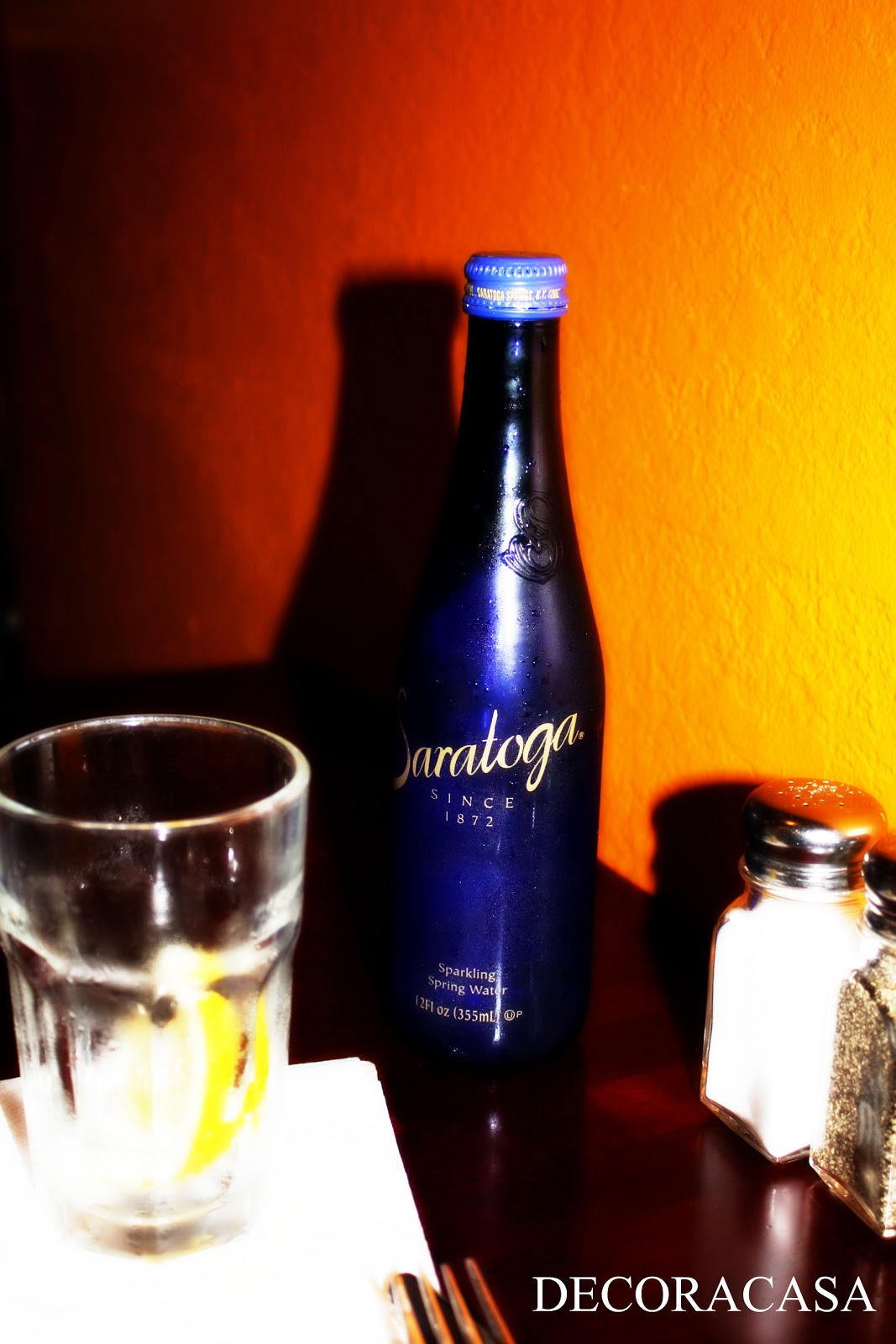 Também pedi uma água com gás que veio nesta linda garrafa azul. Confesso aqui com todas as minhas forças que esta história de guardar garrafas já virou um vício – e como todo bom vício, trouxe a garrafa comigo.