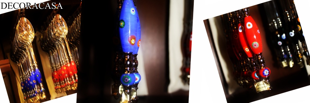 Os famosos vidros de murano, agora revisitados em pequenos porta retratos e cabos de colheres.