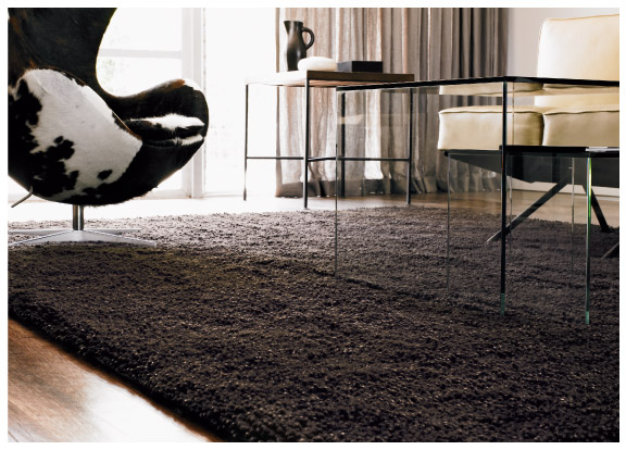 A leveza do vidro, com pele de vaca e um tapete bem pesado