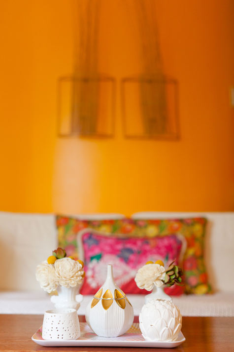 amei a parede laranja e os objetos elegantes com formas inusitadas
