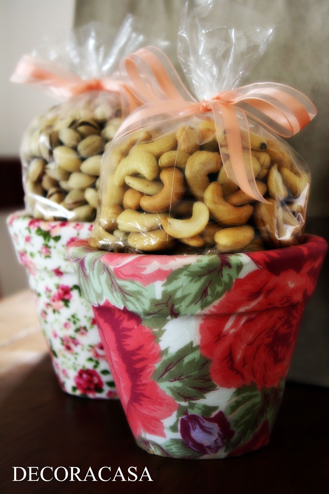 Quando fui passar os dias na casa de uma amiga muito querida, levei os vasinhos “recheados” de pistache e castanha de caju.