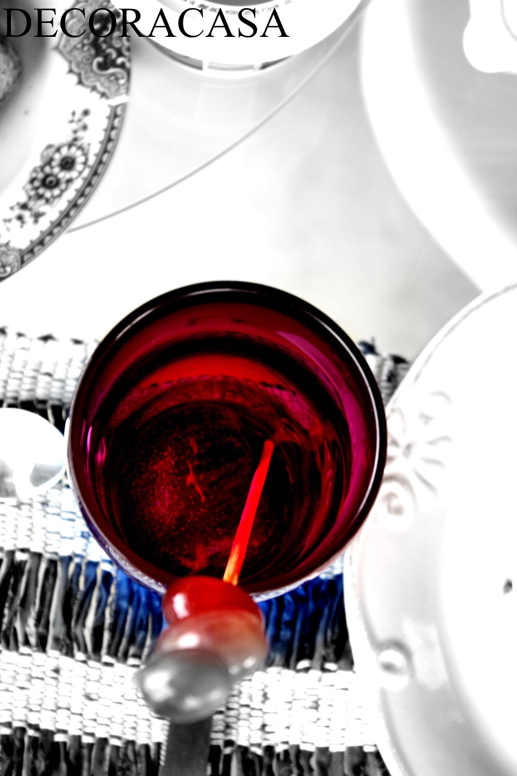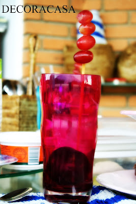 Todos os copos decorados com espetinhos de uva e uma ameixa no interior.