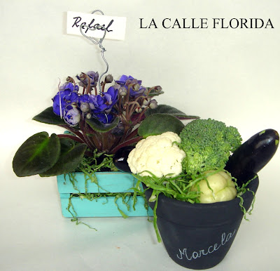 Couve-Flor + brócolis japonês + mini berinjela ,cenoura,chuchu, tomate cereja, repolho roxo ,e…+ folhinhas de ervas e temperos vão fazer as vezes de flores e folhagens….e +++ na falta de musgo verde usei repolho cortado… improvisar é tudo !!!! É tudo que gosto!!!!