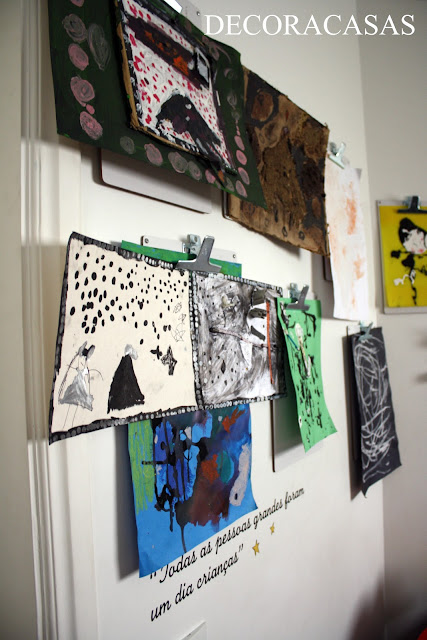 Nos blogs e sites gringos vemos tantas coisas bacanas feitas com os desenhos dos filhos. Quadros, exposições,…