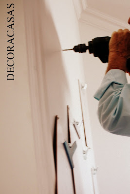Ele, caprichoso que é, fez dois furos em cada uma delas para que ficassem bem fixas.