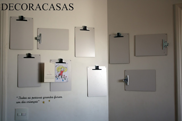 O resultado final foi este, com todas as pranchetas cobrindo todas as paredes, colocadas de forma aleatória.