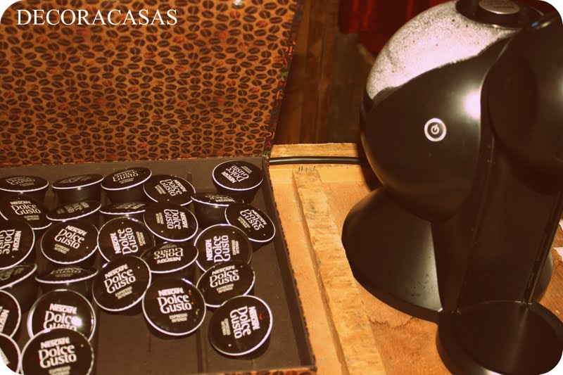Na feira da madeira & design a Cris desenvolveu uma caixa especial, porta cápsulas de café.