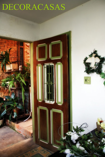 Agora olha que bacana o que a Claudia fez: com pouca tinta látex (sim, a mais simples e básica do mercado) ela apenas realçou a parte trabalhada de uma antiga porta dando um aspecto moderno e único ao ambiente.
