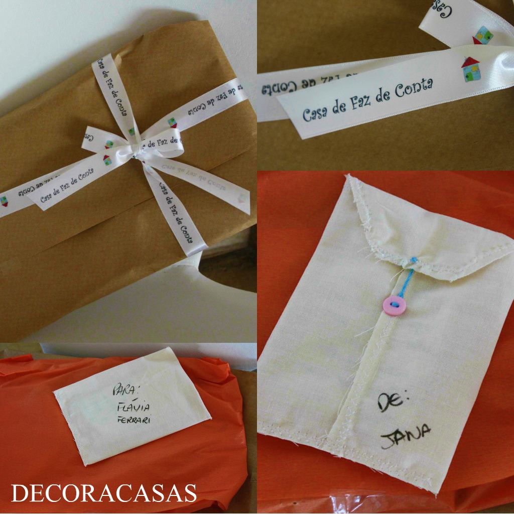 Depois a cartinha: envelope e papel de carta em tecido, cheio de palavras lindas (Sim, Jana, eu também adoro você e admiro muito o seu trabalho como mãe de três, blogueira e crafter)