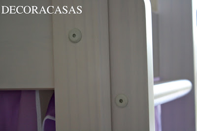 Tecnicamente, só elogios: prazo de entrega cumprido, entrega bem feita, montagem impecável (manual detalhado explicando a montagem idem) e um produto de qualidade. Super de qualidade: é madeira mesmo, de reflorestamento e firme (como eu gosto). O acabamento é muito bem feito (vejam os detalhes dos parafusos nas cores do móvel branco lavado – fooofos!) e tem soluções muito inteligentes. Olha só: as cabaninhas-xodó são amarradas ao estrado da cama, uma solução simples e eficiente. Quem faz direito, merece reconhecimento!