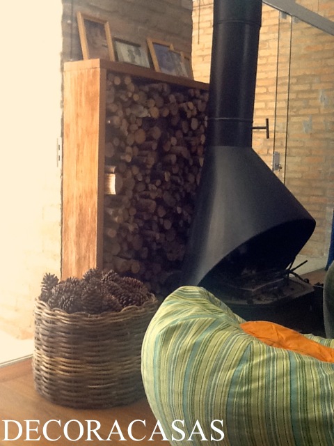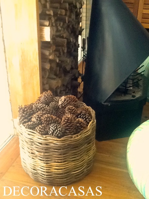 Independente do frio o calor o que vale nestas fotos é a ideia contida: um cesto repleto de pinhas para decorar e dar um charme extra à lareira, certo?