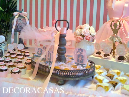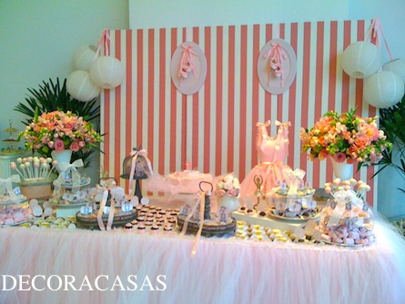 Lanternas japonesas, listras e muito tule – pois o tema eram “bailarinas” – formaram uma combinação pouco provável mas muito harmônica.
