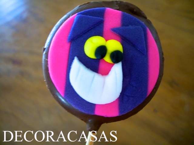 E para finalizar o Gato de Cheshire – maluco total, meu preferido. Não em feltro, mas em chocolate com suas cores marcantes e sua risada única. Pronto para ser apreciado – e prontamente devorado 🙂