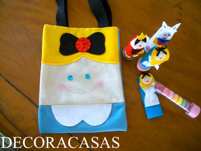Na saída, as meninas ganharam como lembrancinha uma sacola – também m feltro – estampando o rosto da personagem principal. Outra ideia de simples execução – toda feita com cola quente – e muito impacto (na verdade, eu estou quase pedindo à minha filha que me dê a sacolinha – muito fofa!)