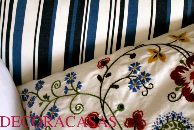 • Diferentes, mas com algo em comum: bacana é estampar com fontes diferentes, não precisamos nos ater aos clássicos composês. Mas um ponto importante é que as listras e as flores que você irá combinar tenham as cores em comum. Ou seja, como na foto: fundo branco e os mesmos tons de azul. Agora se você optou por estampas iguais, vale variar a cor para dar ginga.