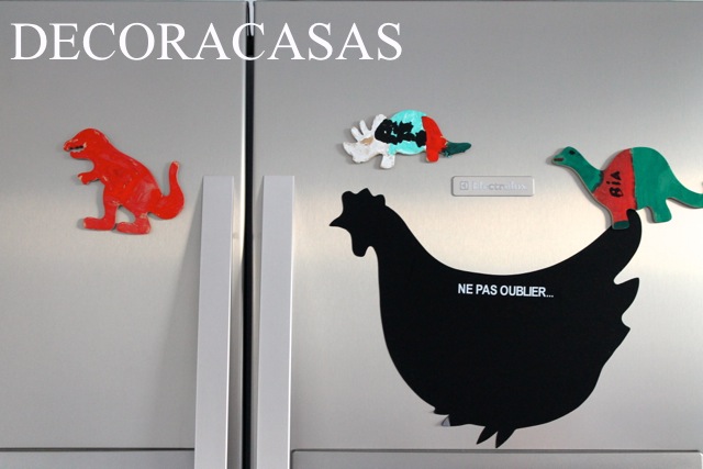 Mas, pensando bem, esta mesma ideia pode ser reproduzida de várias formas: com recortes prontos de mdf + ímas (disponíveis em lojas de material para artesanato) ou com figuras recortadas em EVA, também com ímas no verso. Esta ideia com EVA traz a flexibilidade da facilidade de recorte de várias formas com facilidade – multiplicando infinitamente as possibilidades de criação.