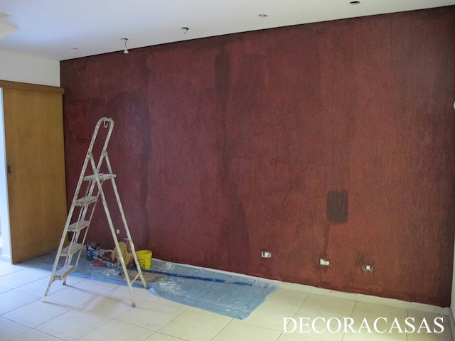 Para dar personalidade ao espaço era necessário escolher um produto tivesse um brilho discreto e um tom elegante. O vermelho fechado (Vermelho Marrocos – Ref. 10YR 07/125) Acabamento de Seda, lançamento da Coral, cumpriu esta função de realçar a textura da parede e definir . As demais paredes receberam o Branco Tule ( ref. 50BG 72/006) também no Acabamento de Seda.